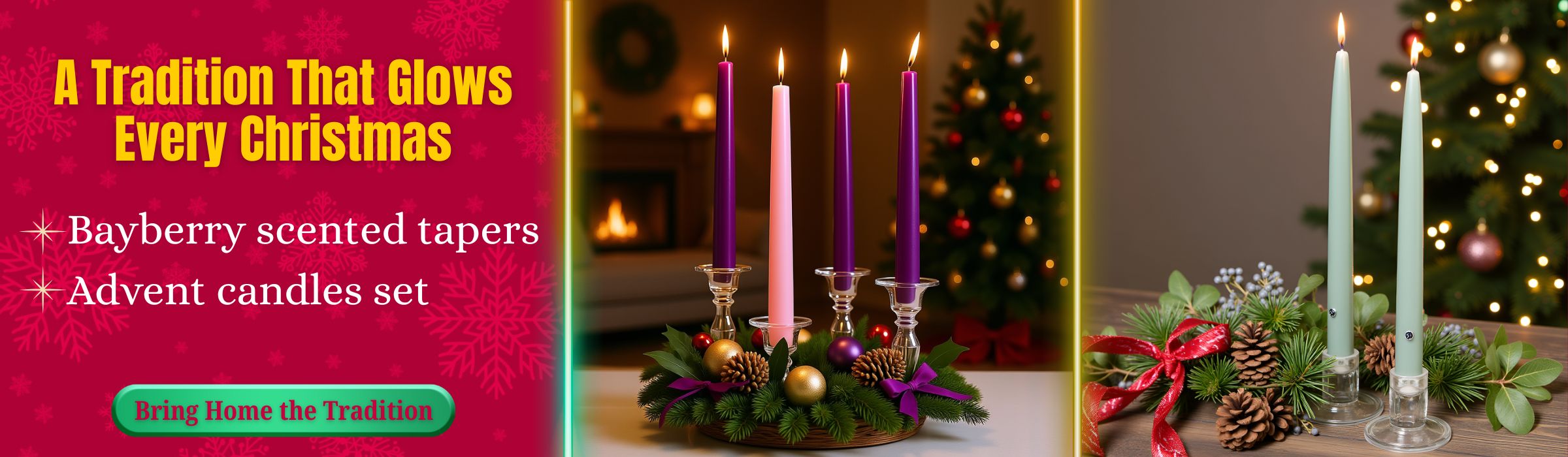 The Advent taper set includes three purple and one pink candle, each representing a week of reflection and joy leading up to Christmas.