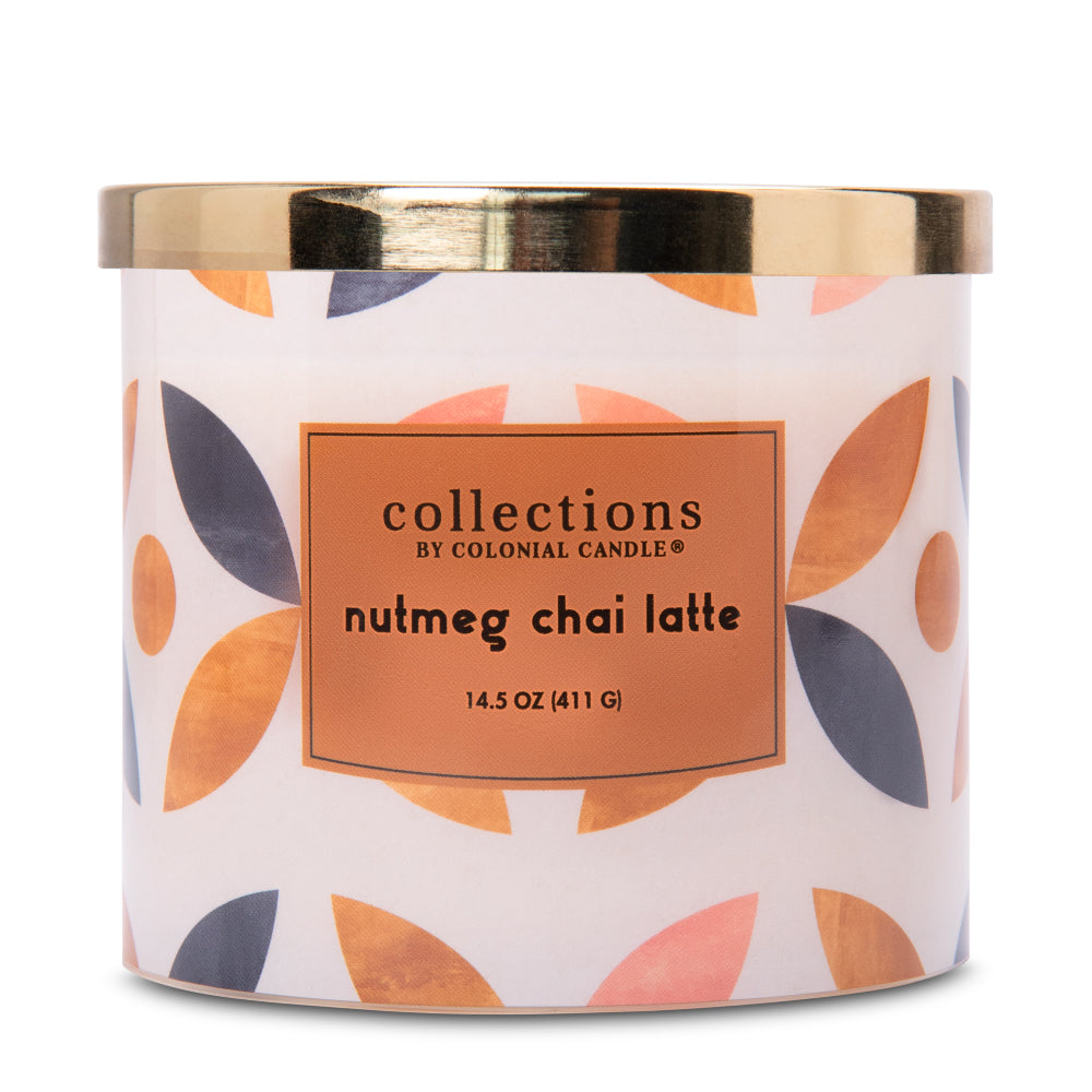 Base Notes: Vanilla Bean, Warm Woods WARMTH | Enjoy the smell of a freshly brewed chai at any time of the day with Nutmeg Chai Latte. Warm notes of nutmeg swirl together with toasty vanilla bean and brown sugar to create a soothing fall fragrance.
