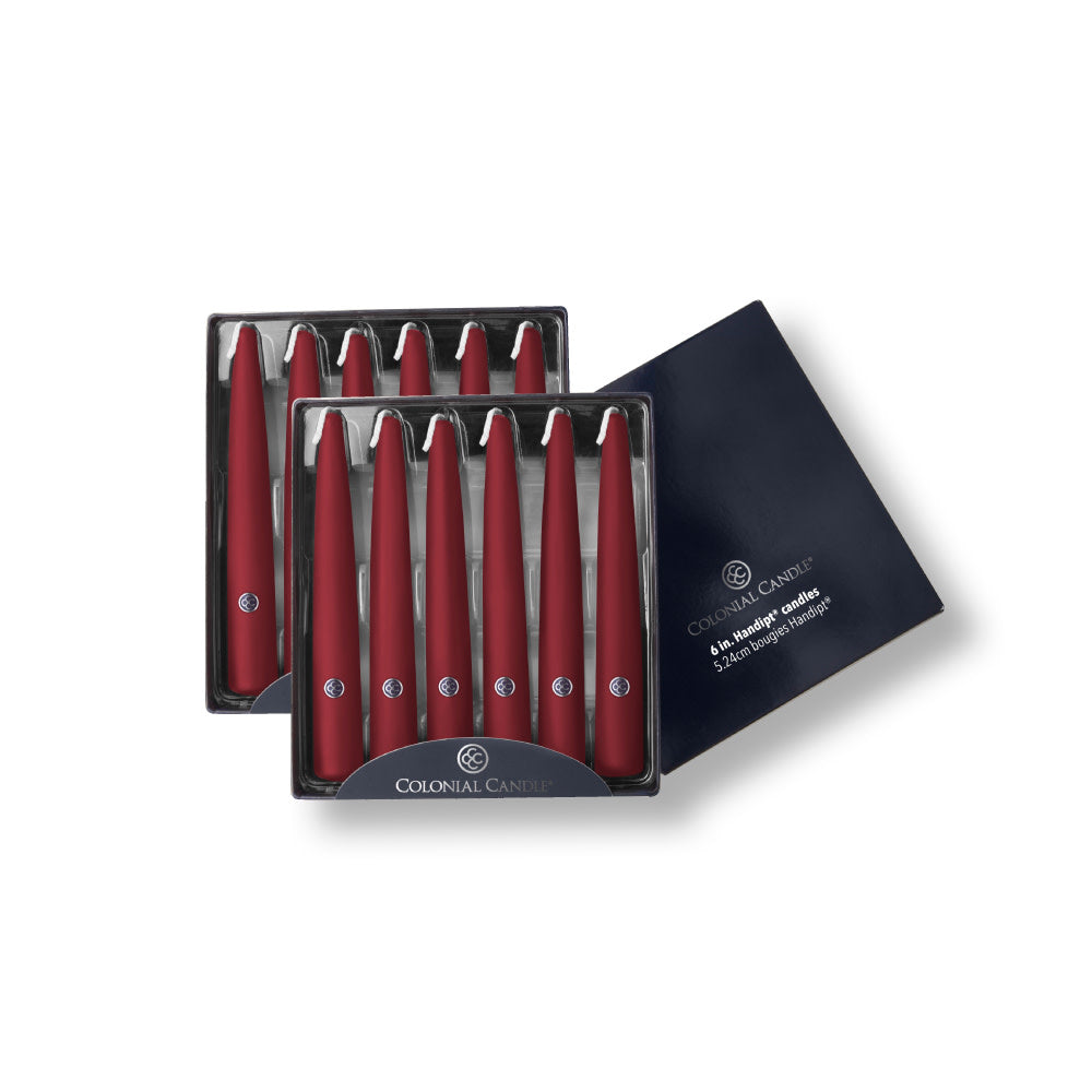 6" Traditional Cranberry Handipt Taper, 12 Pack