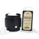 Command attention with Midnight Swagger, a bold and captivating fragrance from the Manly Indulgence Classic+ Collection. This 2.75oz Wax Melt exudes confidence and sophistication, starting with the rich aroma of tobacco leaf and rugged leather. Warm notes of sandalwood and amber bring depth and elegance, while the finishing touch of oak moss grounds the scent in timeless masculinity.