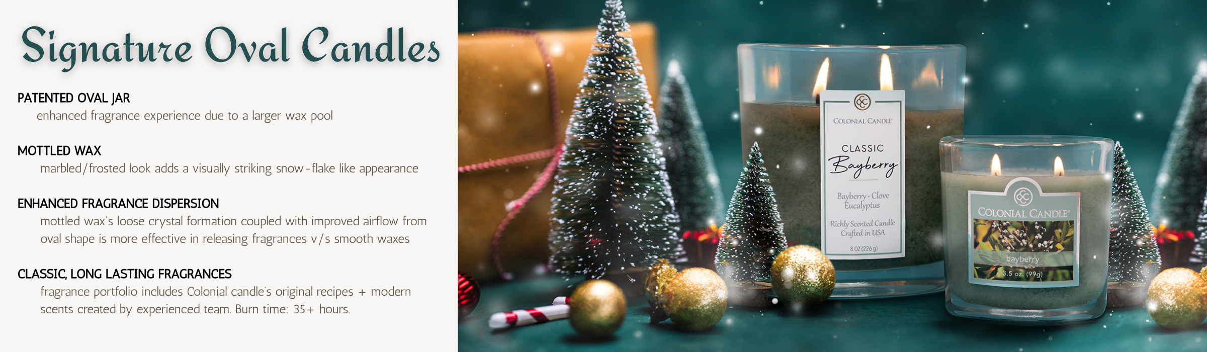 Fill your home with joy and happiness with Colonial Candle's timeless fragrances in the Signature Oval jars.