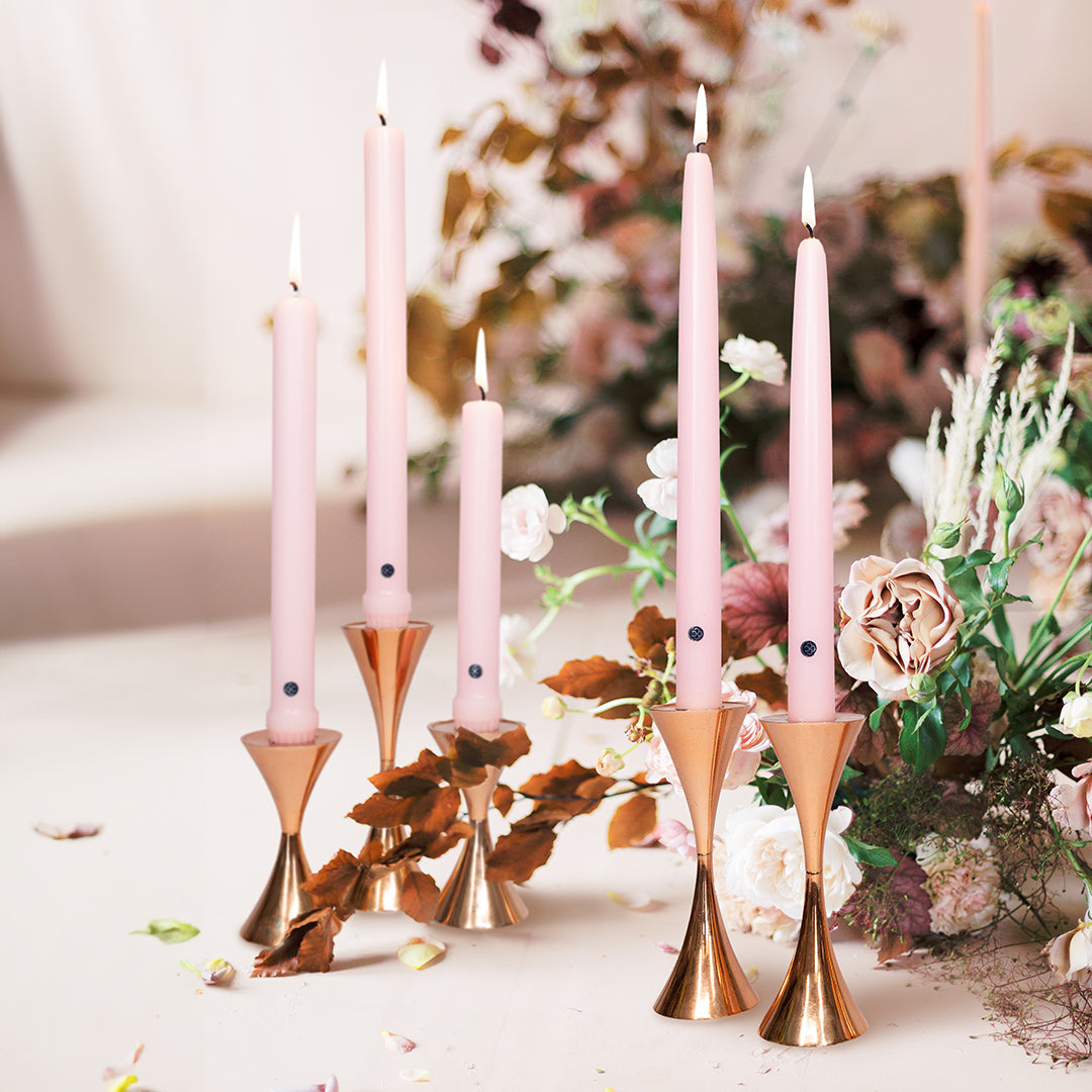 Our dinner candles are meticulously crafted with high-quality, high melting point wax and a precisely centered cotton wick. This combination ensures a clean, even burning of wax that minimizes dripping.