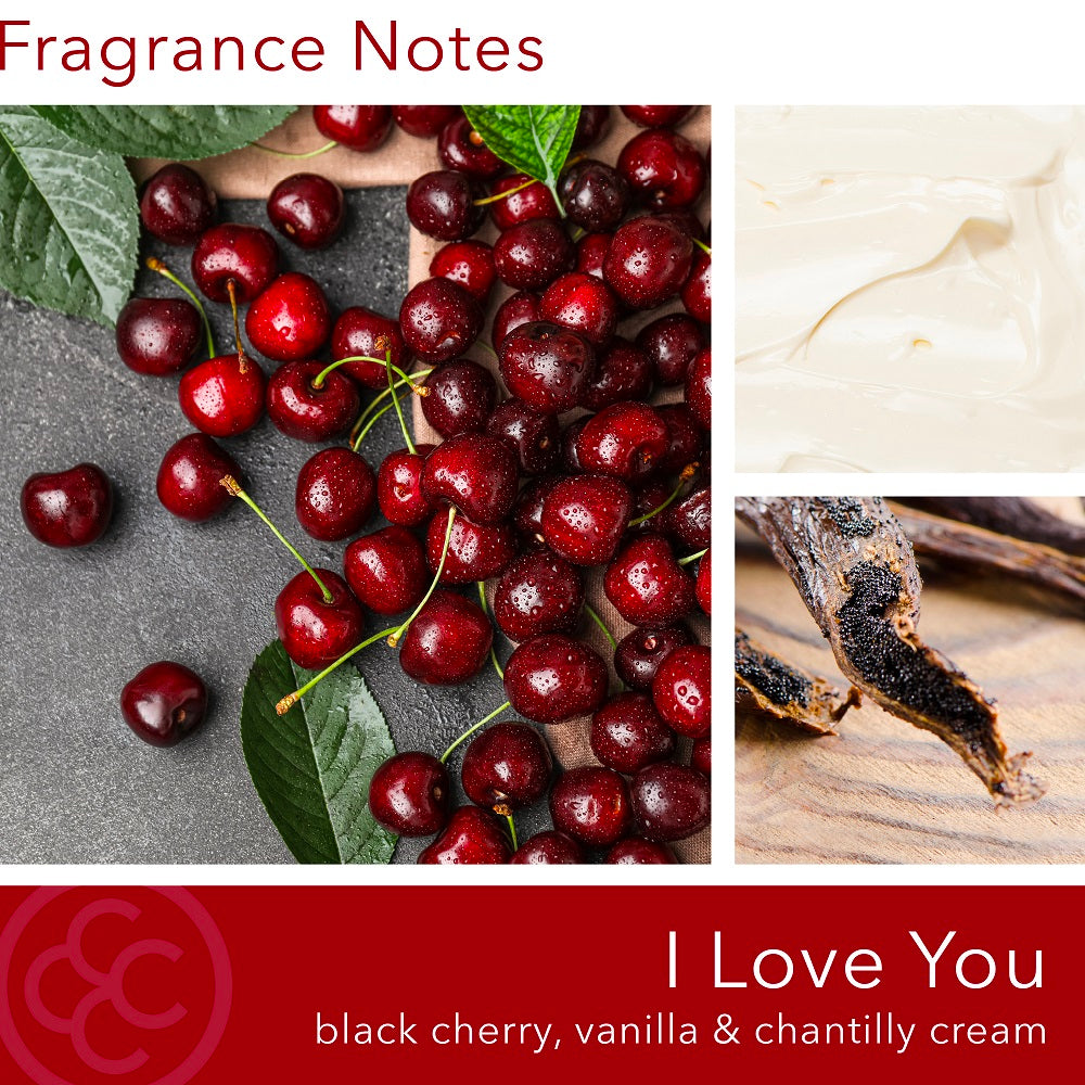 LOVE YOU FOREVER SCENT | A decadent blend of juicy black cherry and sweet red berries balanced with the creamy vanilla buttercream and warmed with soft woods.