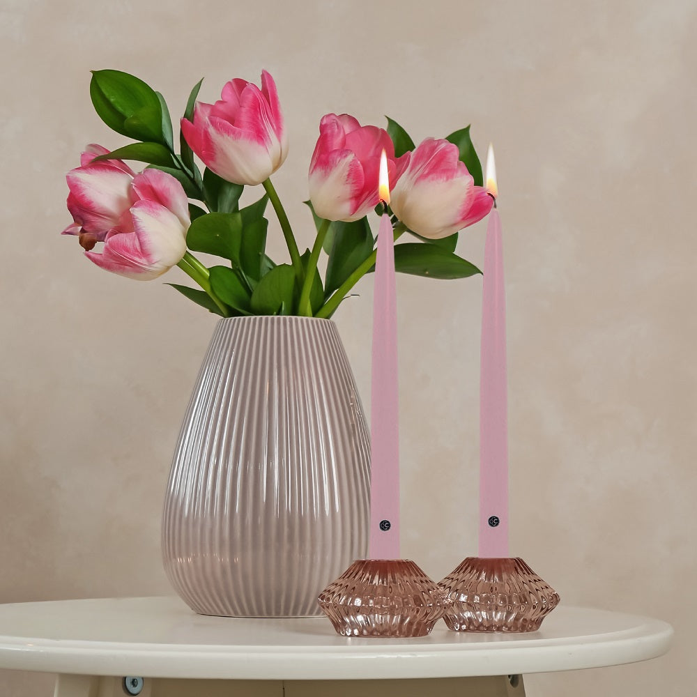 Think soft, glowing romance—blush florals, cozy textures, gentle music playing in the background, and a table that feels warm and inviting without trying too hard. These pink tapers add a subtle, modern touch to the setting, creating an atmosphere that feels intimate, effortless, and beautifully styled. Perfect for a Valentine’s brunch, a quiet dinner for two, or a thoughtfully curated space that celebrates love in its softer moments.