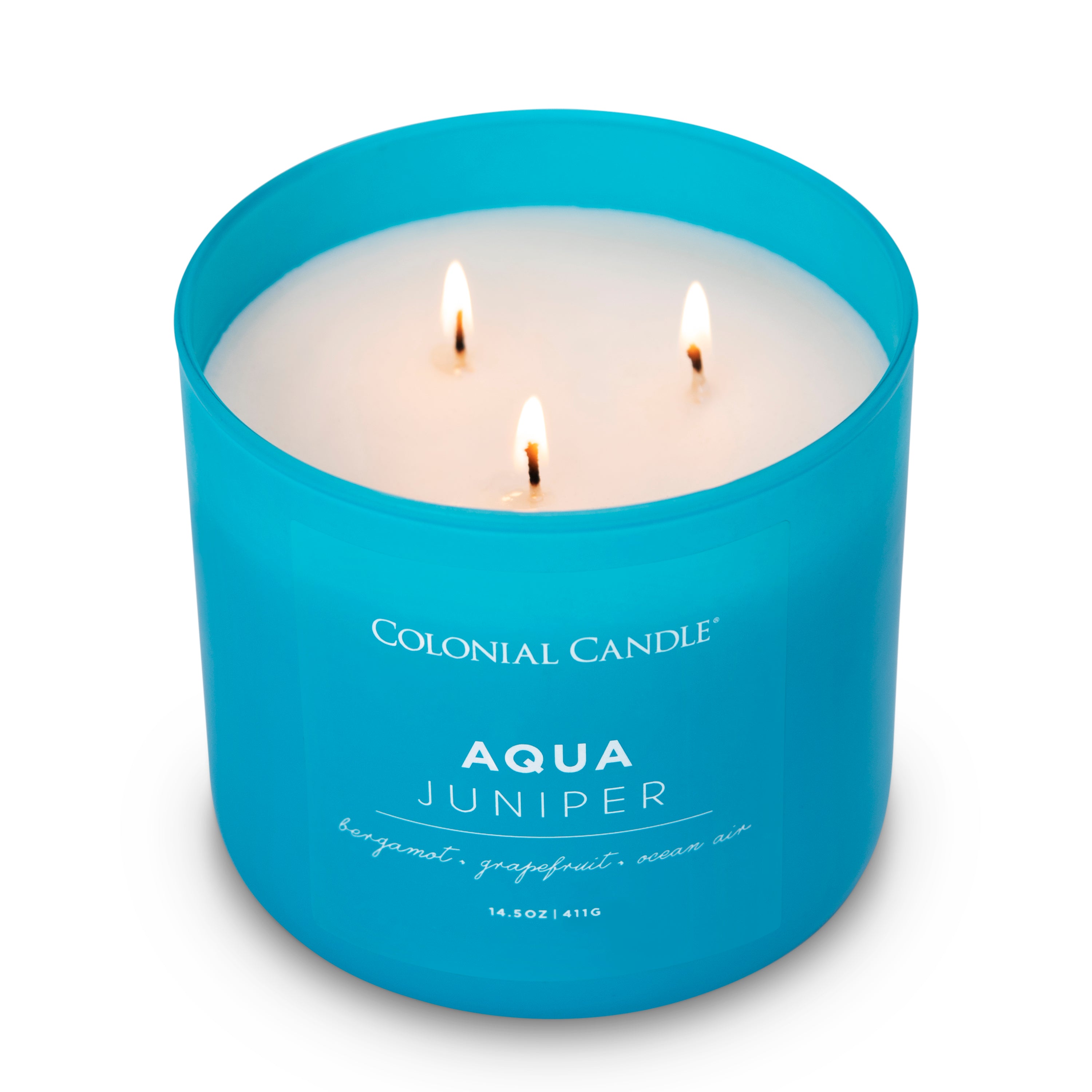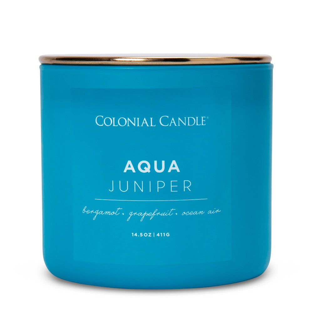 Aqua Juniper allows you to take your senses on a vacation! Poured into a 14.5-ounce jar topped with a thin inset gold lid, this candle will make your décor style POP. Wrapped in a clear label, the bright color and bold fragrance speak for themselves. Brighten your day with the Pop of Color Collection by Colonial Candle!