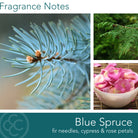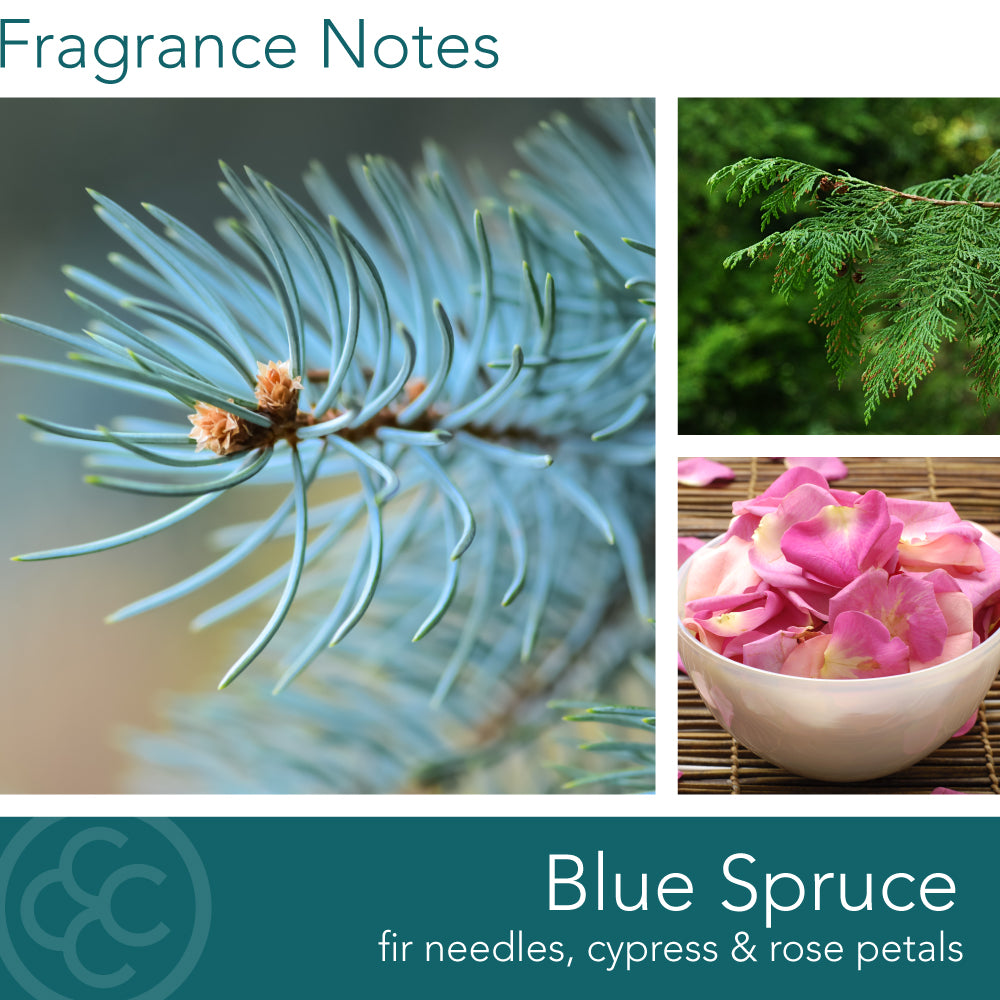 - Blue Spruce is back! This fan favorite is a rich woods scent with notes of fir needle, cedarwood, ine, and clove.